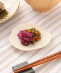 Mino ware mini plate made in Japan featuring a flat and soft rounded shape in nuanced colors. Recommended to serve small bites, condiments or displaying little sweets.