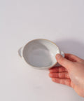 A Japanese-made Mino ware cocotte-style mini bowl. This small bowl, with its charming combination of a traditional Japanese texture and a cocotte shape, is perfect. It can be used not only for serving portions of hot pot dishes but also as a small bowl for simmered dishes, pickles, and more.