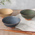 Rice bowls made using the traditional technique of 'tatara-narashi' (tapping shaping) from the Mino Bunzan Kiln, which has been in operation for over 100 years in Toki City, Gifu Prefecture. A distinctive feature of these bowls is the wood grain pattern that emerges during the preparation of the clay and the details on the rim and tapered foot.